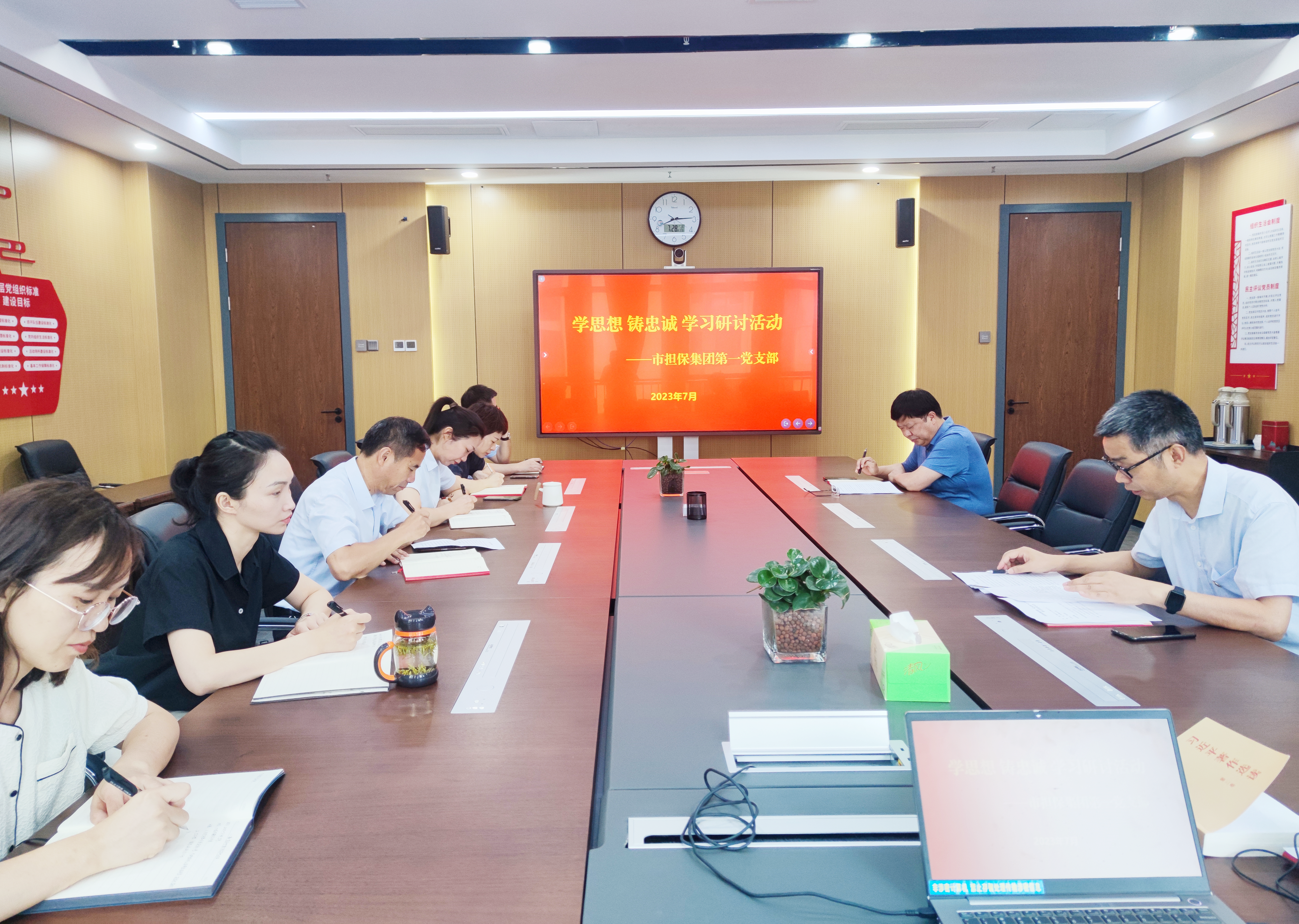 為慶祝中國共產(chǎn)黨成立102周年,7月28日,市擔保集團第一黨支部開展“學(xué)思想、鑄忠誠”學(xué)習(xí)研討活動,支部黨員參加會議。