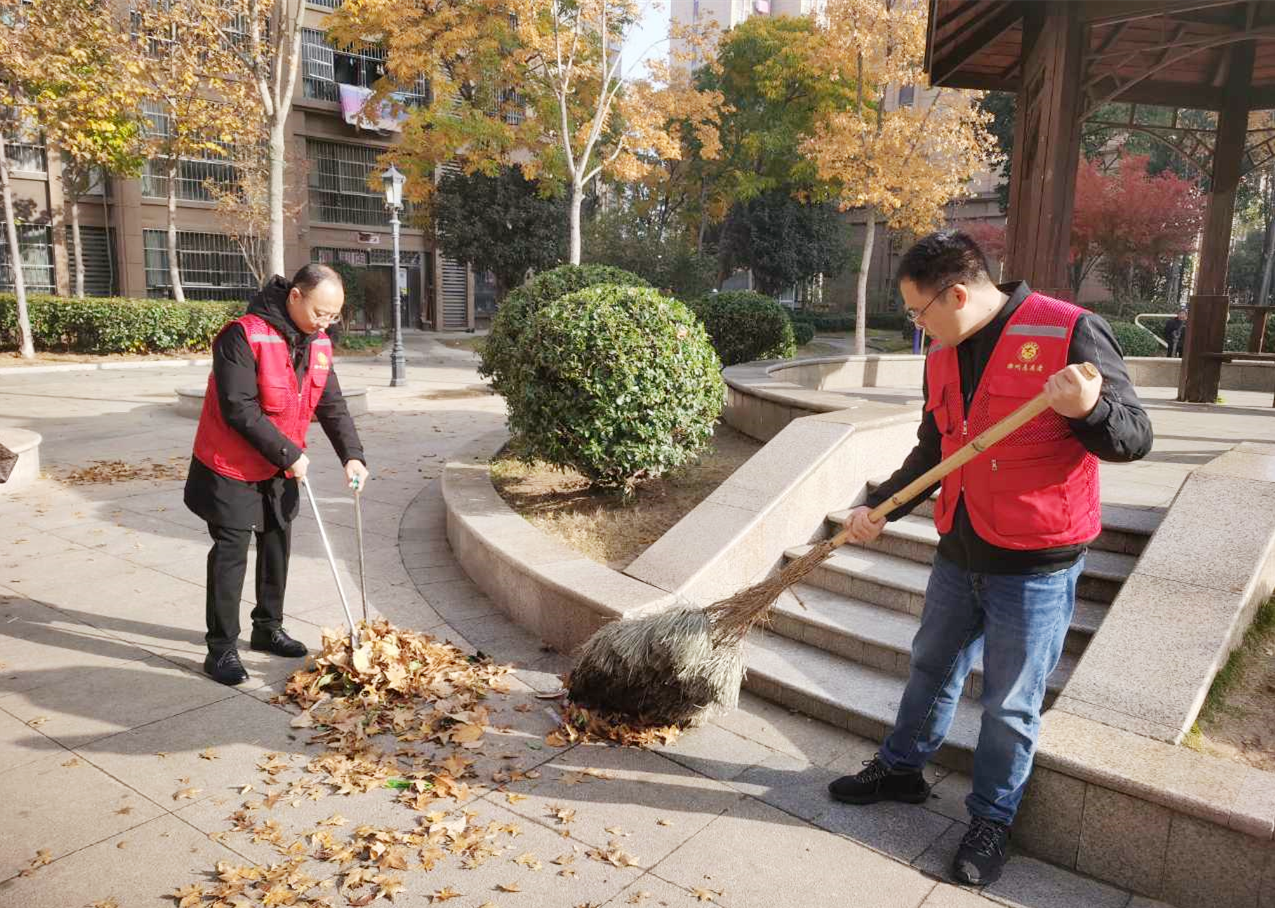 隨后黨員志愿者們身體力行,清掃小區(qū)廣場(chǎng)落葉,清除公共場(chǎng)所、內(nèi)部道路、樓前屋后的垃圾,幫助社區(qū)做好環(huán)境衛(wèi)生清潔工作。
