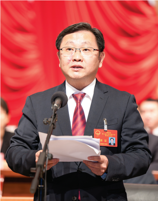 市委書記吳勁在市七屆人大四次會(huì)議第二次大會(huì)上講話。
