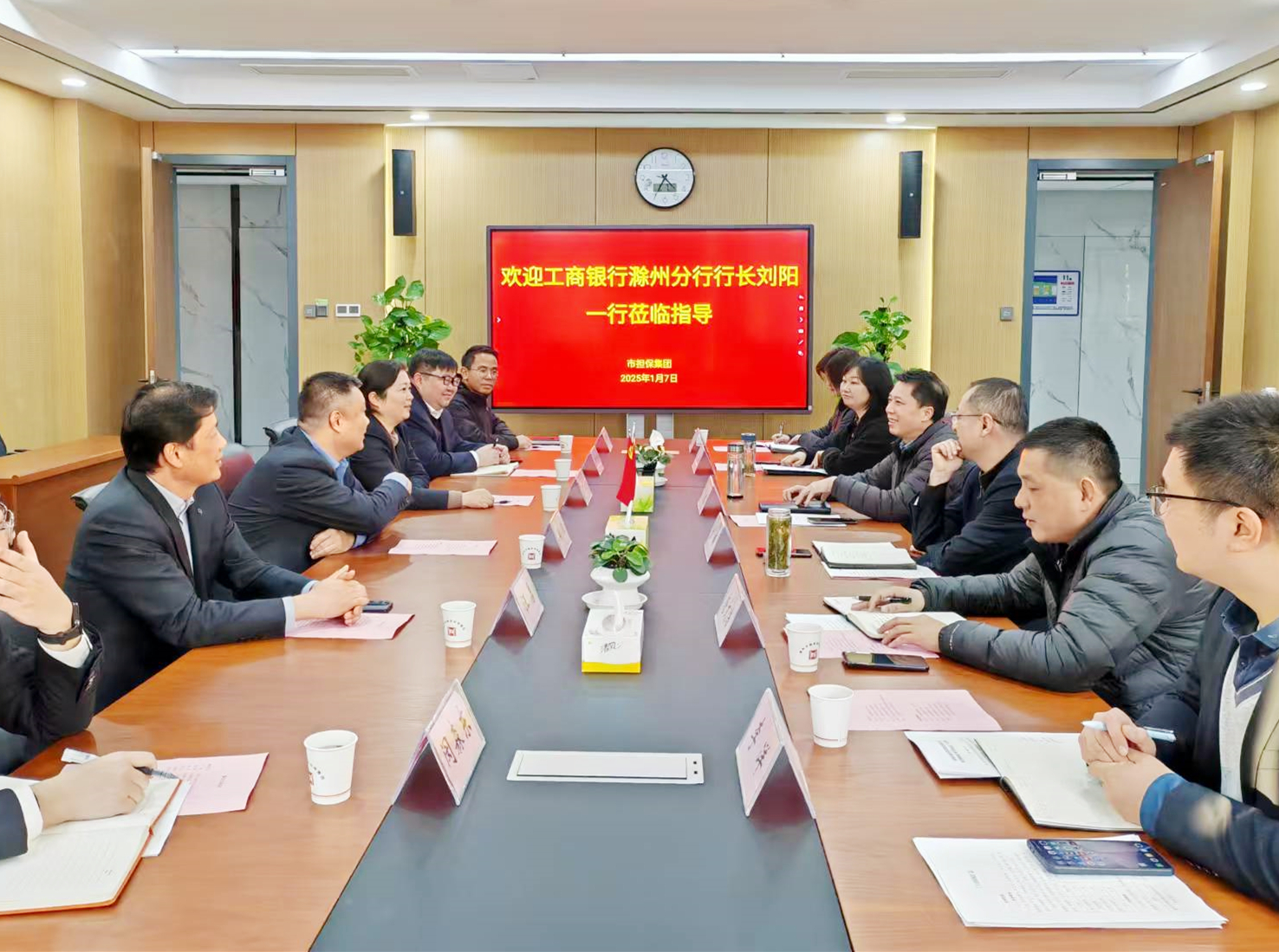 1月8日下午,工行滁州分行黨委書(shū)記、行長(zhǎng)劉陽(yáng)一行蒞臨集團(tuán)交流座談,集團(tuán)黨委書(shū)記、董事長(zhǎng)、總經(jīng)理高文進(jìn)主持會(huì)議,部分班子成員、相關(guān)部室負(fù)責(zé)人參加座談。