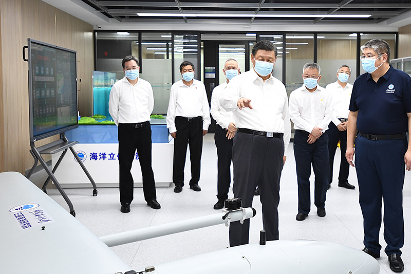 4月10日至13日,中共中央總書(shū)記、國(guó)家主席、中央軍委主席習(xí)近平在海南考察。這是10日下午,習(xí)近平在中國(guó)海洋大學(xué)三亞海洋研究院考察。新華社記者 燕雁 攝