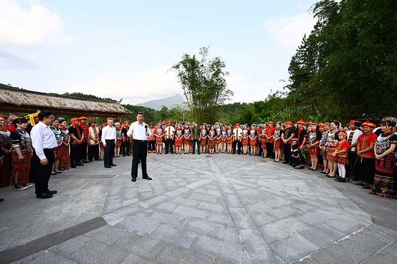 4月10日至13日,中共中央總書(shū)記、國(guó)家主席、中央軍委主席習(xí)近平在海南考察。這是11日下午,習(xí)近平在五指山市水滿鄉(xiāng)毛納村同村民們親切交流。新華社記者 李學(xué)仁 攝